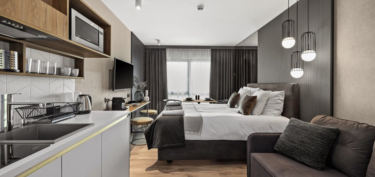 The apartment is very clean, comfortable and has the necessary equipment. Even though it is on a busy street, it is quiet and the bed is very comfortable, so you can really relax. Nice and very helpful staff. Convenient parking. Overall, all a plus. We will come back :)